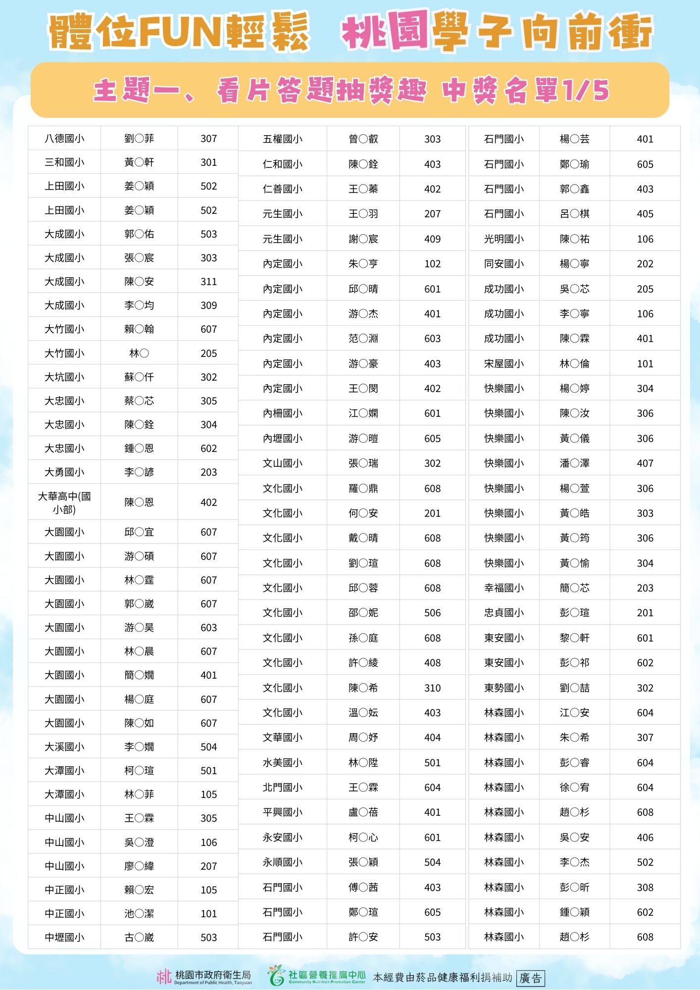 體位FUN輕鬆 桃園學子向前衝 🎉主題一、看片答題抽獎趣得獎公告