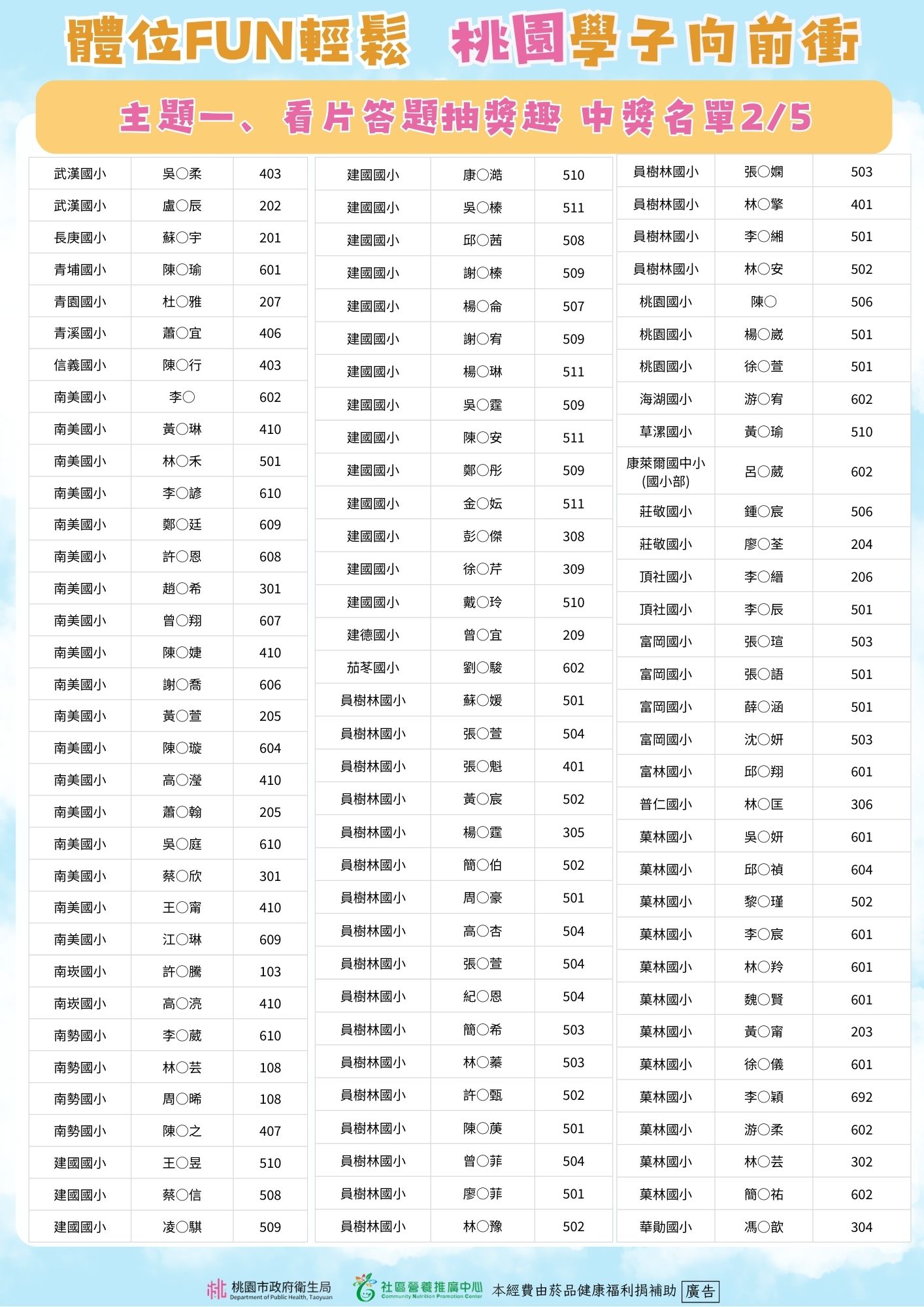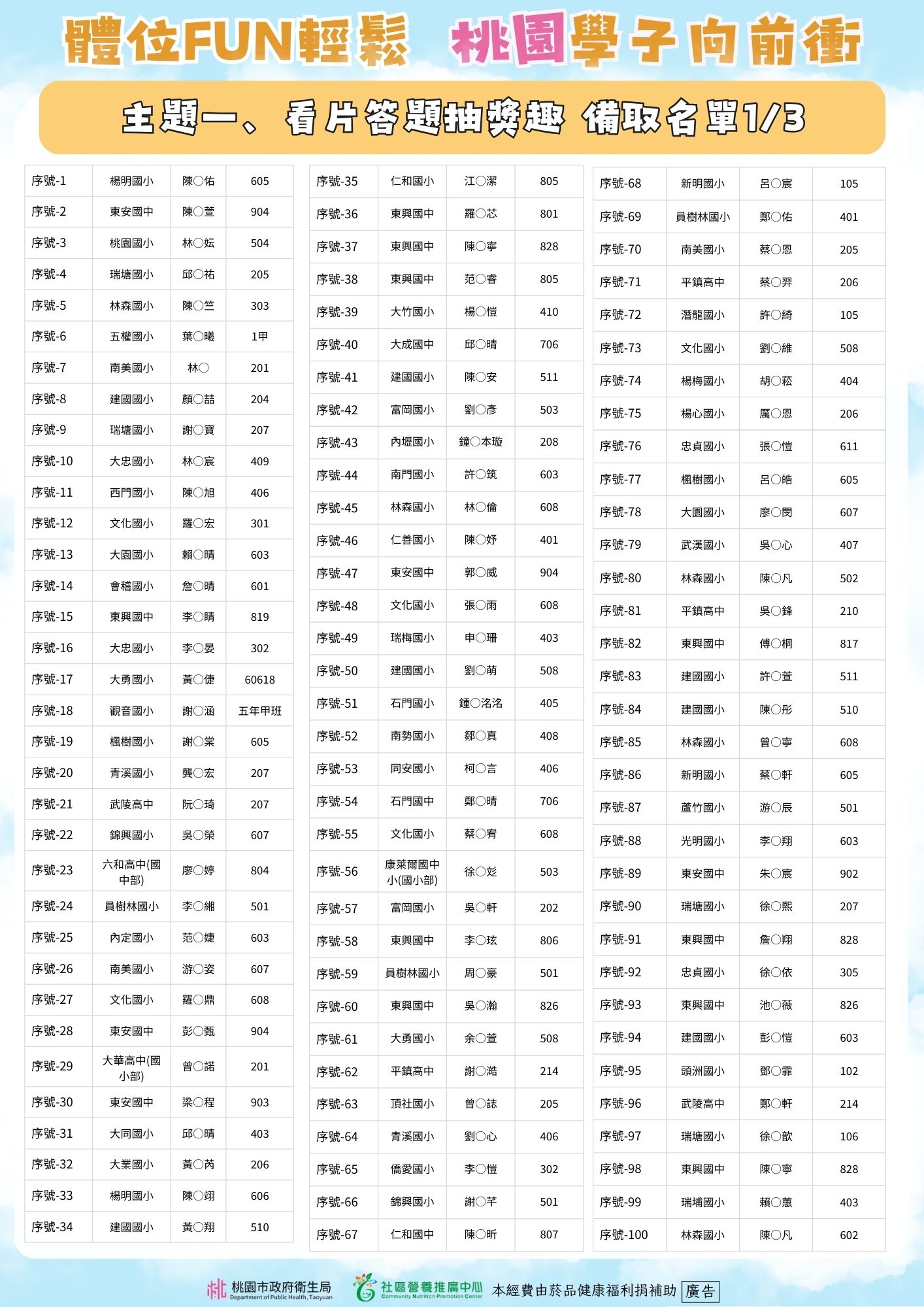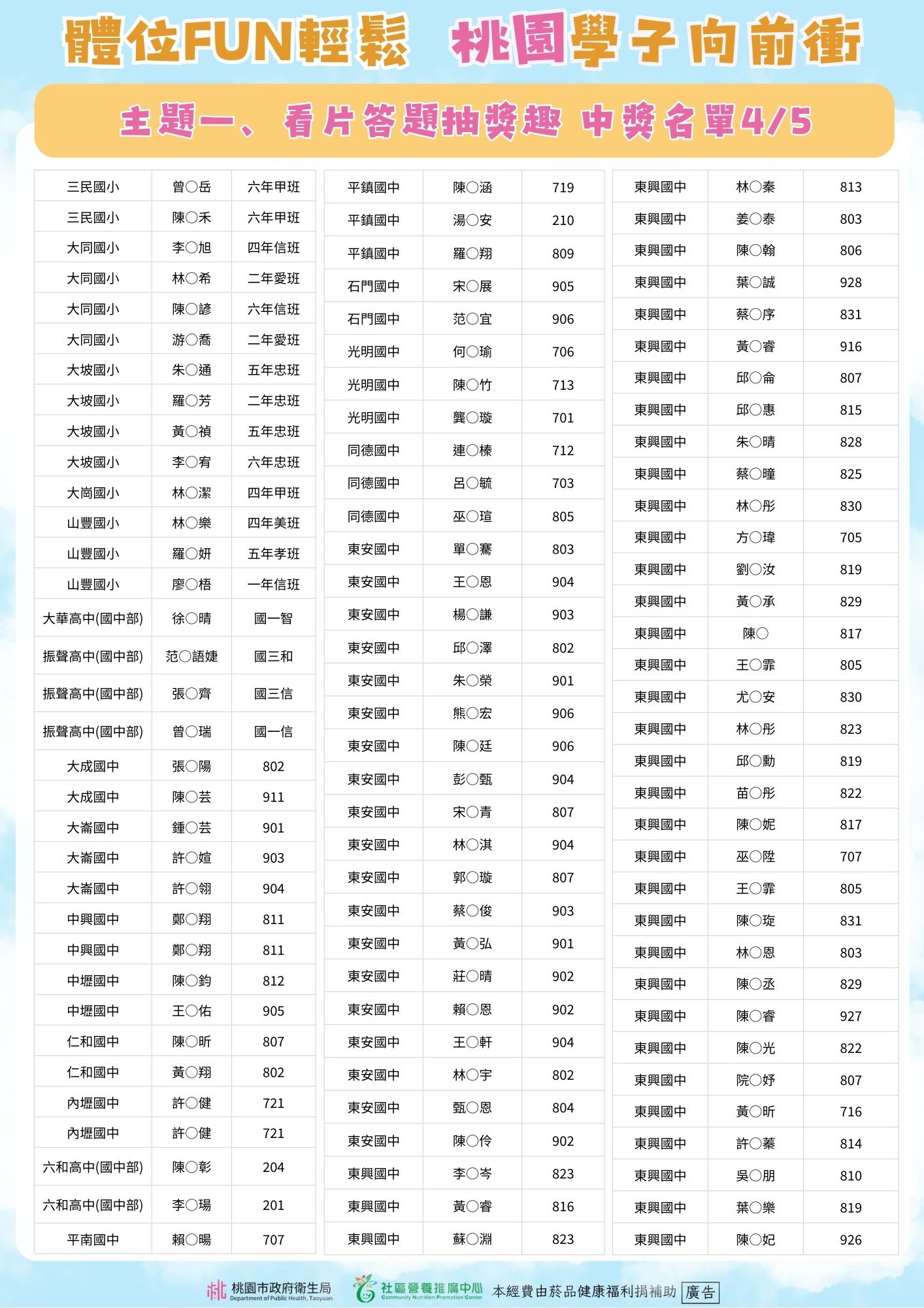 體位FUN輕鬆 桃園學子向前衝 🎉主題一、看片答題抽獎趣得獎公告