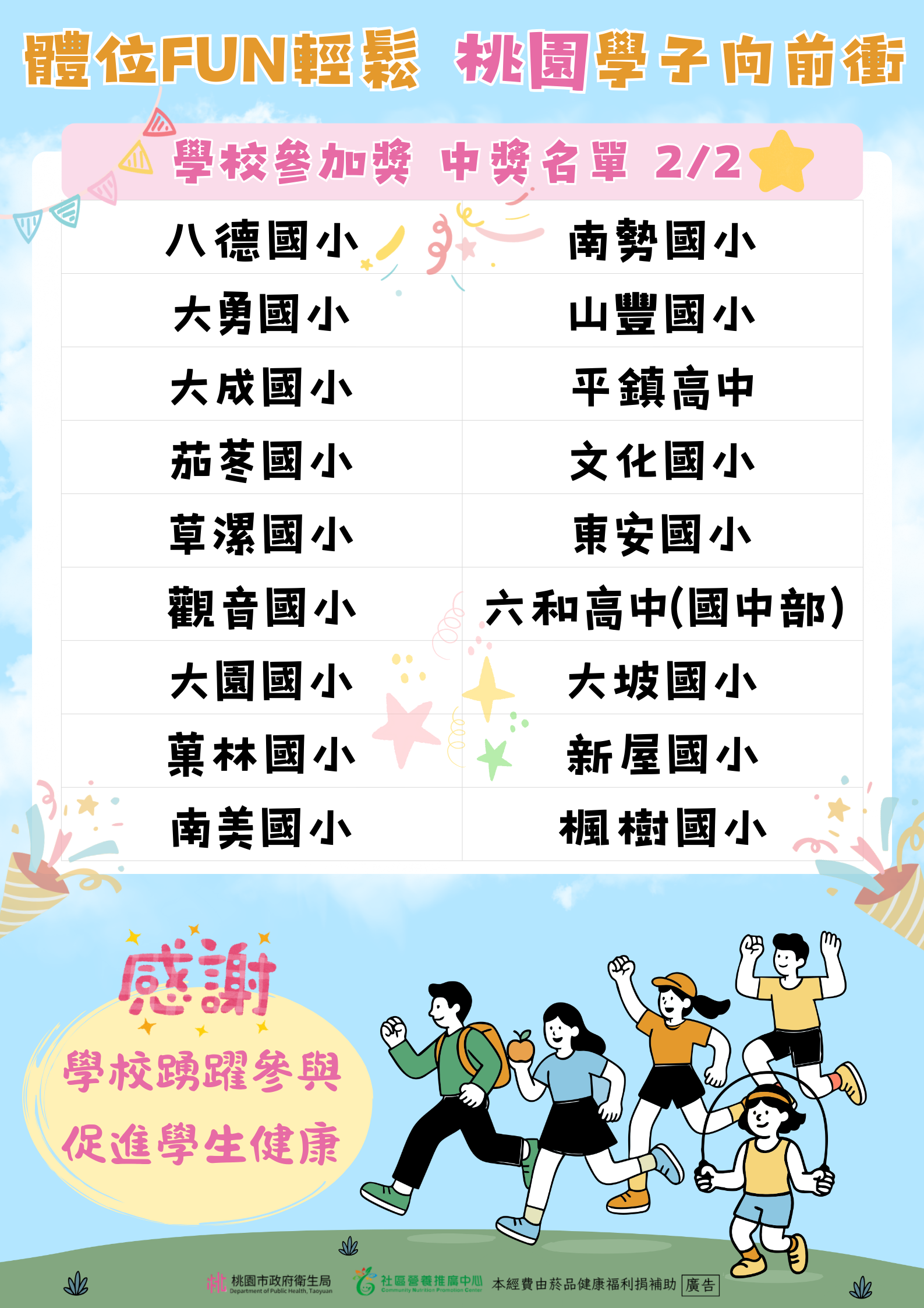 體位FUN輕鬆 桃園學子向前衝🎉學校參加獎🎉得獎公告