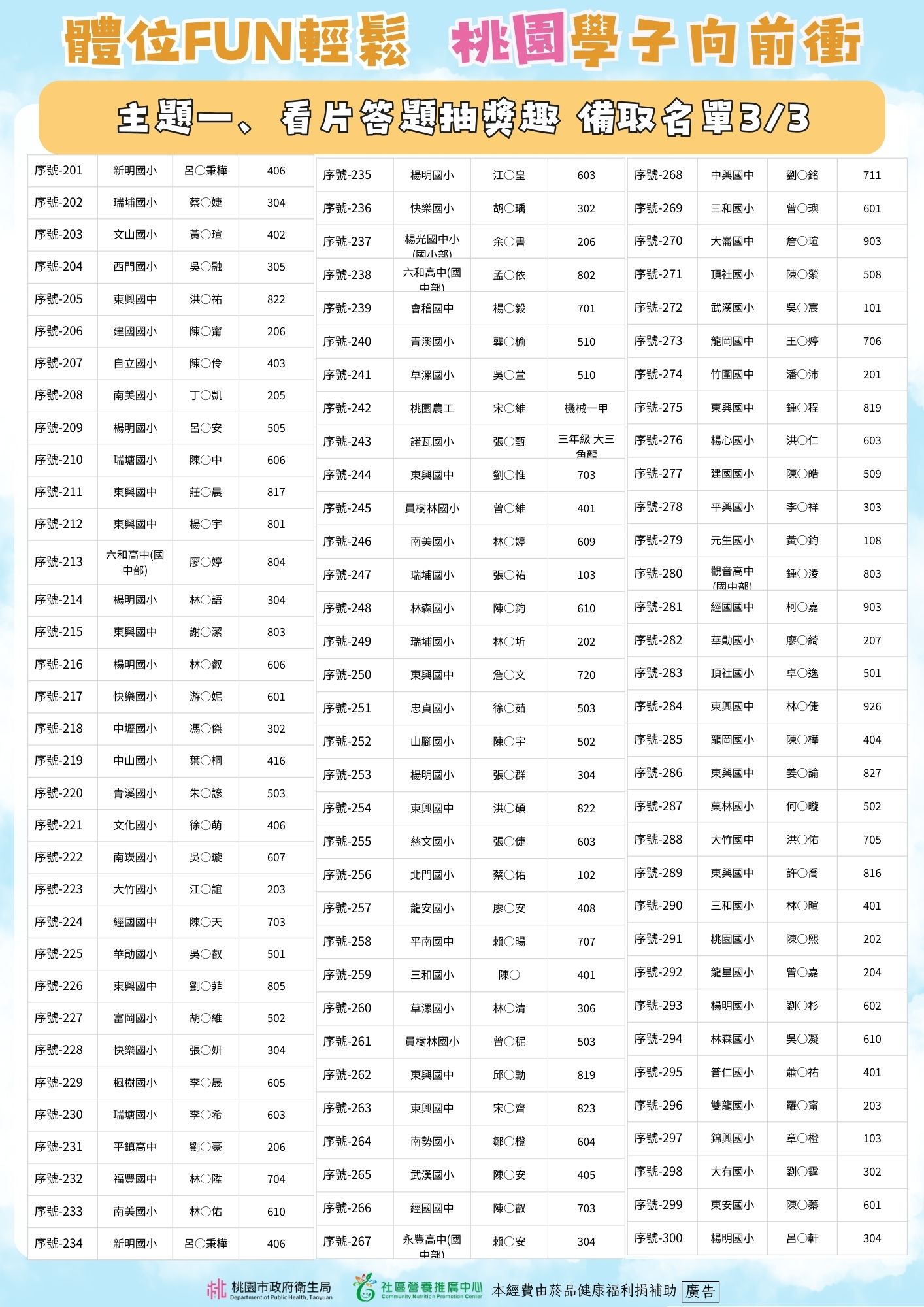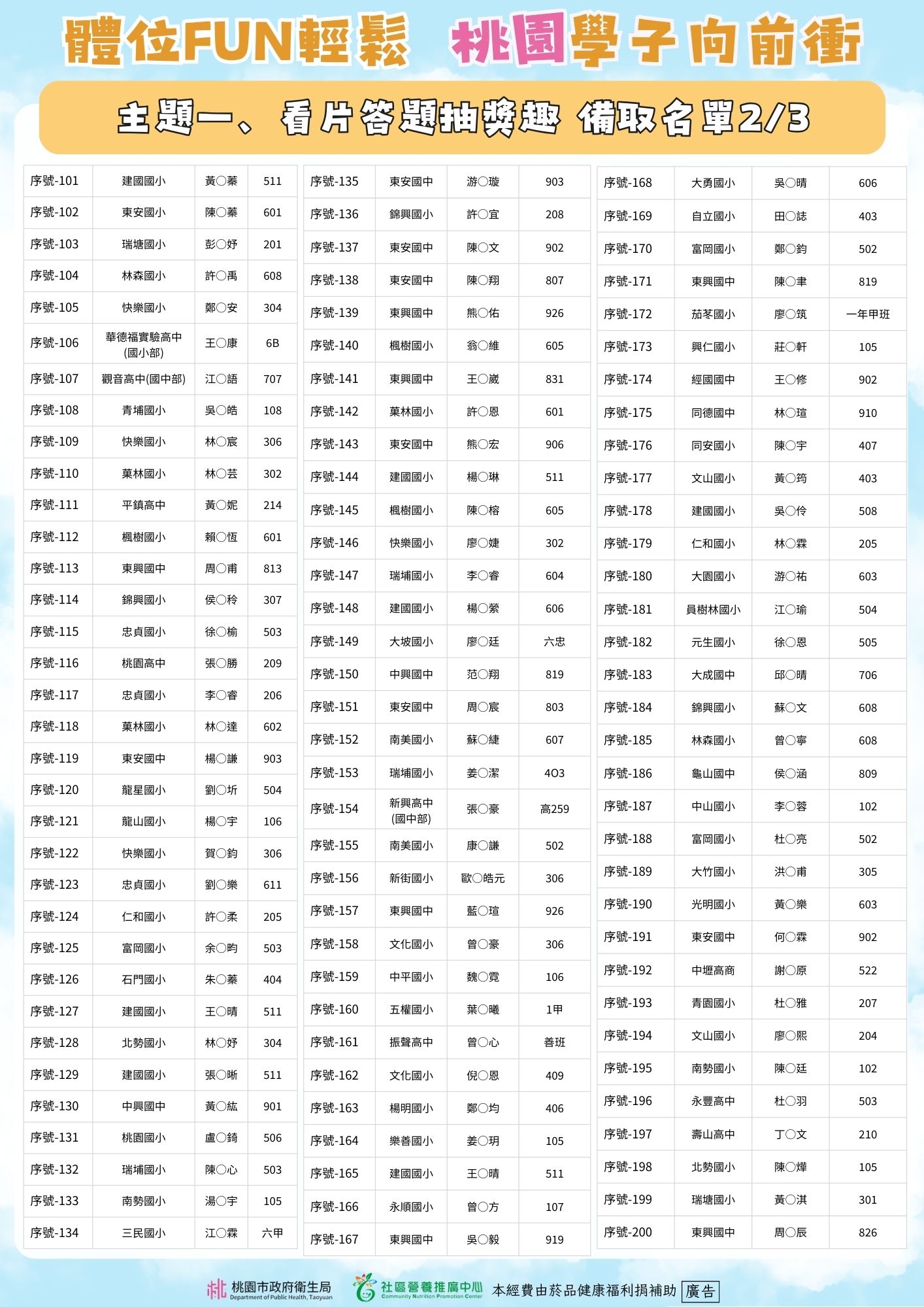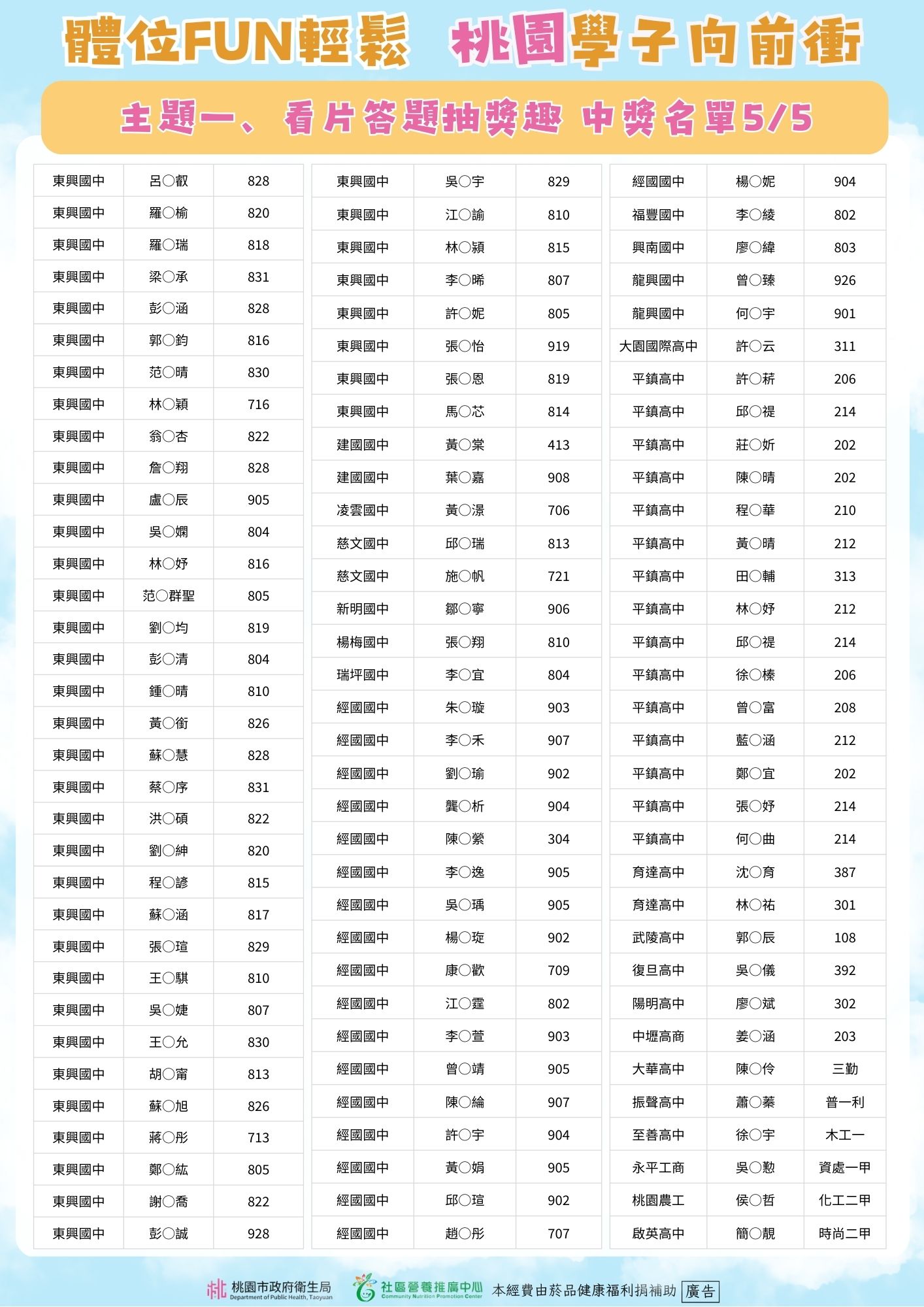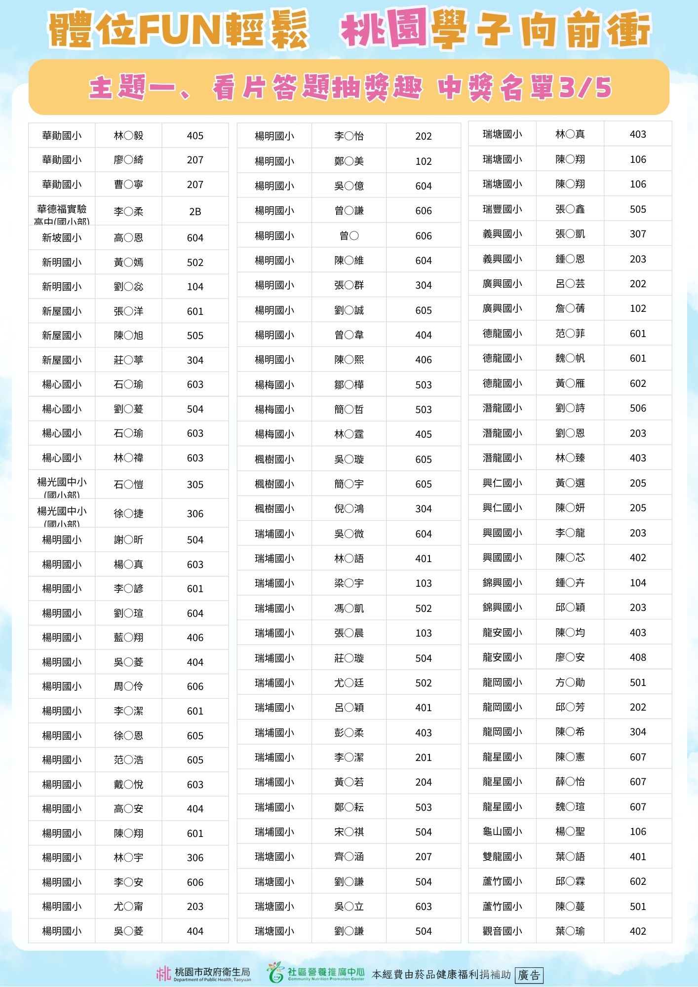 體位FUN輕鬆 桃園學子向前衝 🎉主題一、看片答題抽獎趣得獎公告