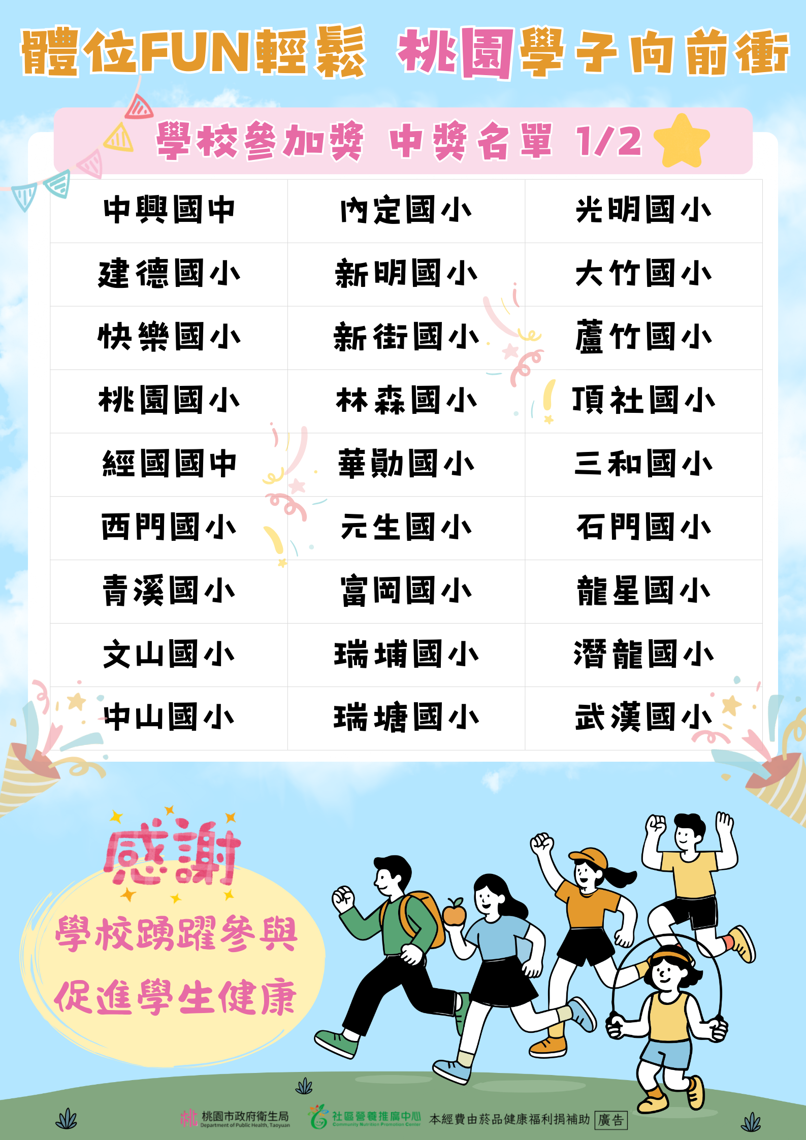 體位FUN輕鬆 桃園學子向前衝🎉學校參加獎🎉得獎公告
