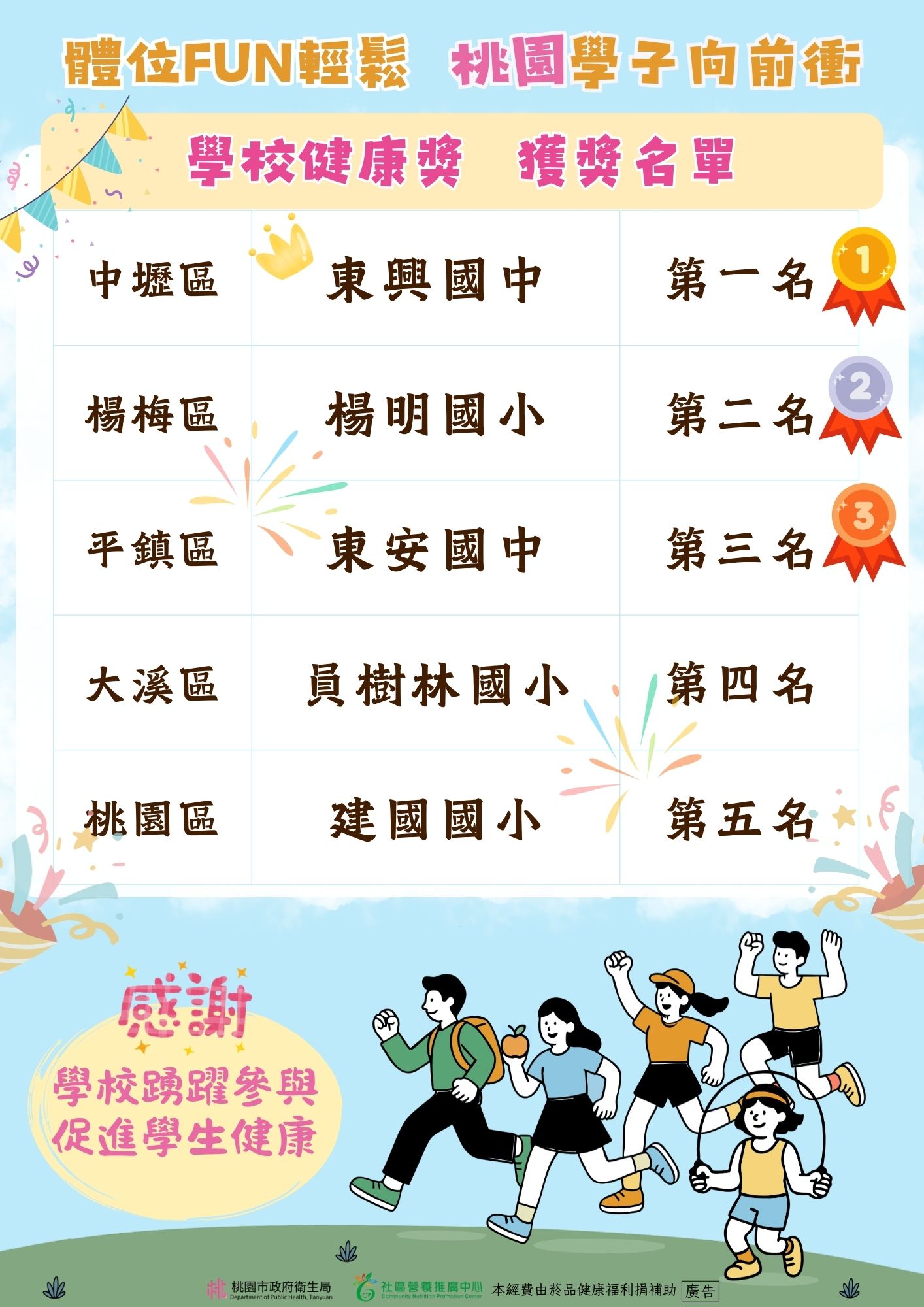 體位FUN輕鬆 桃園學子向前衝🎉學校健康獎🎉得獎公告